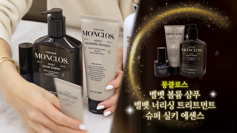 She featured MONCLOS Velvet Volume Shampoo, Velvet Nourishing Treatment, and Super Silky Essence.